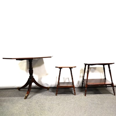 Mahogany octagonal pedestal table, width 91.5cm, height 76cm; and two similar mahogany occasional tables, cantered tops, turned splayed supports, (Qty: 3) ... read more