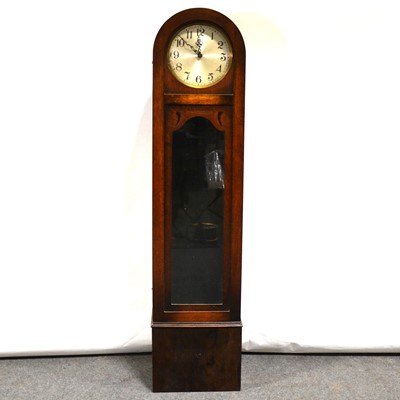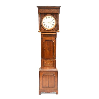 Oak and mahogany longcase clock, adapted case, later dial with battery movement, 213cm.