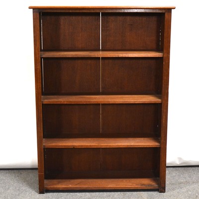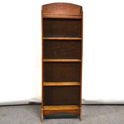 Oak open bookcase, width 41cm, depth 21cm, height 120cm, an oak plant stand and table. (Qty: 3)