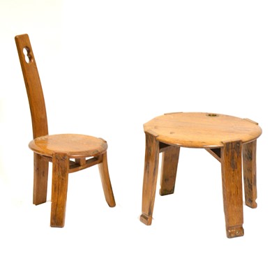Childs table and chair made from a reclaimed barrel, the chair branded Fremlins, height 71cm.