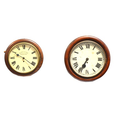 Wall clock, mahogany case, painted dial with Roman numerals signed N Ball & Son, Leicester, single fusee movement, diameter 33cm, and a similar (Qty: 2) ... read more