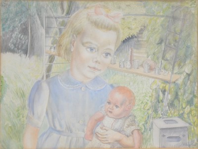 Leighton Hall Woollatt, Study of dolls, oil on canvas, unsigned, dated 1926 on the reverse, 49x60cm, and Susan and Philippa at play, watercolour, ... read more