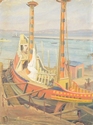 Leighton Hall Woollatt, Mayflower II, oil on board, signed, inscribed on the reverse, 54x75cm, and another study of a boat under construction, oil on ... read more