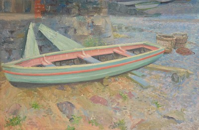 Leighton Hall Woollatt, Rowing boats, oil on board, unsigned, 51x76cm, unframed, and A rowing boat, oil on board, unsigned, 51x76cm.
