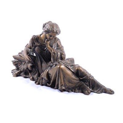 French Neo-classical style bronze figure, probably late 19th century, the pensive figure reclining, lacking base, length 46cm.
