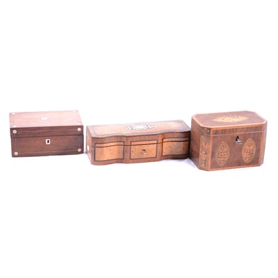 SOLD Lot 151 - Victorian figured walnut workbox, Georgian tea caddy, and a French glove box