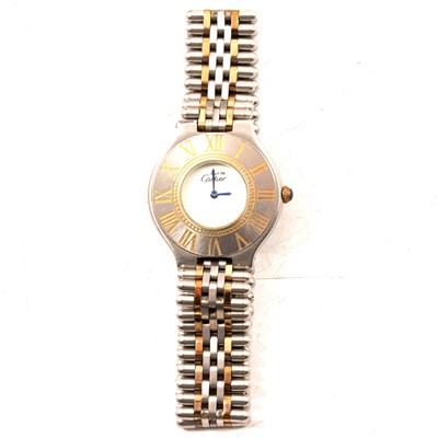 SOLD Lot 184 - Must de Cartier - a stainless steel and yellow metal bracelet wristwatch