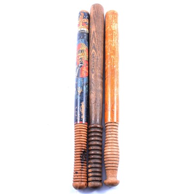 George |V 1820 painted truncheon, 45cm, Plain Victorian Wooden Truncheon with an indistinguishable stamp, 44cm and a Dockyard Truncheon Stamped ... read more