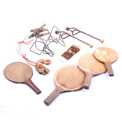 Victorian parlour games, two including 'Swizzle', with four sticks, puck and two goals; table tennis set, with four bats, two table clamped posts, (Qty: 2) ... read more