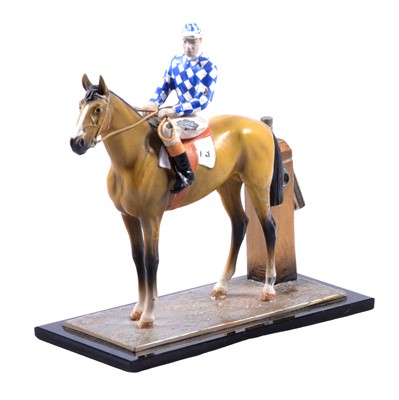 Cold painted bronze Jockey table lighter, rectangular plinth base, height 17.5cm.