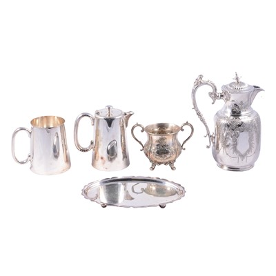Two boxes of assorted plated wares including Victorian plated fish servers, tea and coffee wares, entree dishes, cased flatware and part canteens, ... read more
