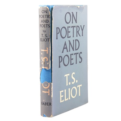 T S Eliot, On Poetry and Poets, 1st edition, London: Faber and Faber 1957, original cloth, dust jacket torn foxed and rubbed, 8vo., inscribed "To ... read more