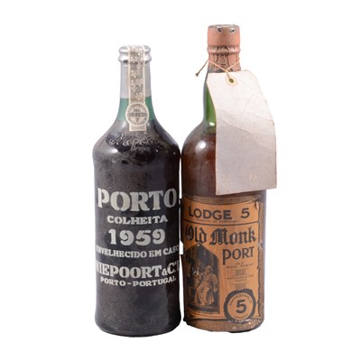 Two bottles of port including: 1959 vintage Niepoort, Colheita Lodge 5 Old Monk Port, Old Rich Tawny. (Qty: 2)