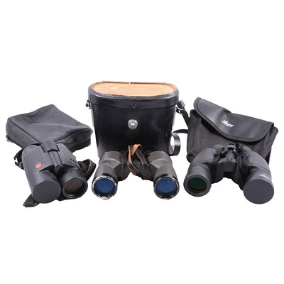 3 Pairs of Binoculars, including: Super Tecnar by Swift, Luger and Leica. All 3 in their own respective cases.