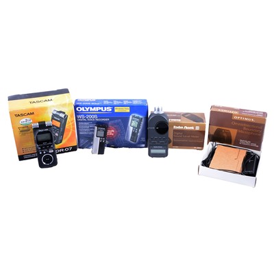 Sound recording equipment; Tascam DR-07, Olympus WS-200S, Optimus Omnidirectional Microphone, Radio Shack Digital Sound Level Meter.
