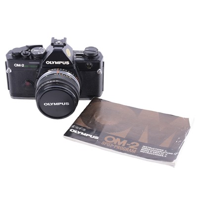 Olympus OM-2 camera, with 50mm lens and instructions.
