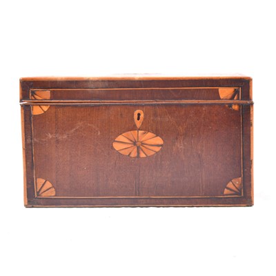 Georgian mahogany and inlaid tea caddy, converted interior, 23cm, 13cm high.