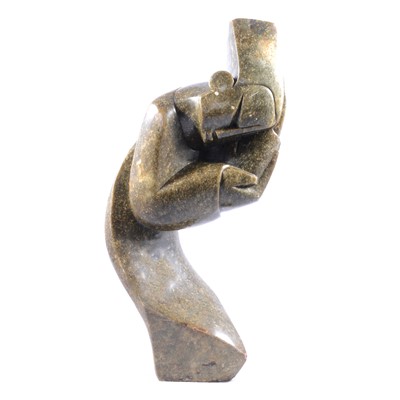 Tonderai Mashaya, a lemon opal Shona Sculpture of a sleeping figure, signed, 49.5cm.