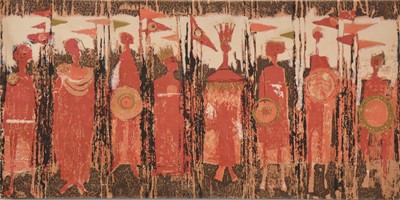 SOLD Lot 195 - A Tibor Reich "Age of Kings" 1964 textile wall hanging