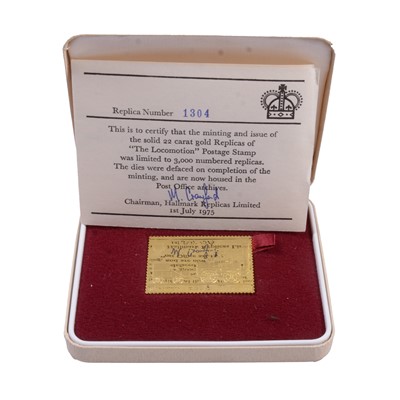 Stepenson's Locomotion, a 22ct gold replica, Hallmark Replicas Ltd., issued 1975, 26grams, cased.
