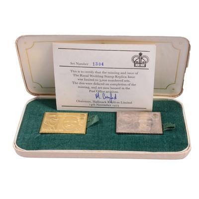 Royal Wedding Commemoratives, HRH Princess Anne and Capt. Mark Phillips, a 22ct gold replica and a silver replica, Hallmark Replicas Ltd., issued ... read more