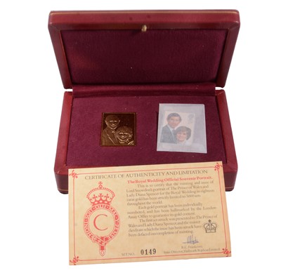 SOLD Lot 171 - Marriage of Prince of Wales and Lady Diana Spencer, 22ct gold replica