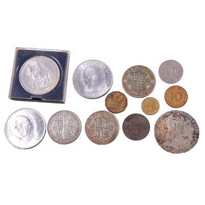 A collection of pre-decimal coins, UK and Worldwide, George IIII 1821 Crown; pre 1947 Half Crowns; commemorative Crowns; general coinage.