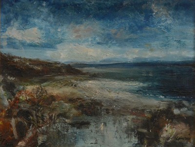 Contemporary Scottish School, Coastal landscape, oil on board, signed Lewis[?], Alastair Kerr Gallery label verso, 36x46.5cm.