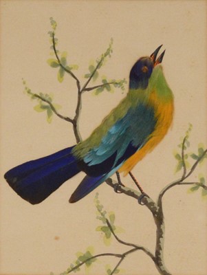 Two pairs of early 20th century feather and watercolour pictures, title on mounts of three, Green Hay, Capirote, Guilote, 23x17mm, and 20x15cm, (Qty: 4) ... read more