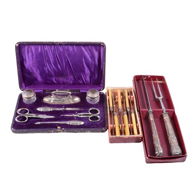 SOLD Lot 185 - Silver backed dressing table set, two silver backed manicure sets, boxed knives