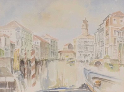 John Thorne, Grand Canal, Venice, watercolour, faintly signed and titled, 30.5x40.5cm; and two others, The Old Fish Merket, Venice; and Moored Canal (Qty: 3) ... read more