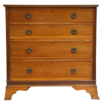 Victorian mahogany chest of drawers, fitted with four graduated drawers, blind fret frieze, bracket feet, width 92cm, depth 49cm, height 94cm.