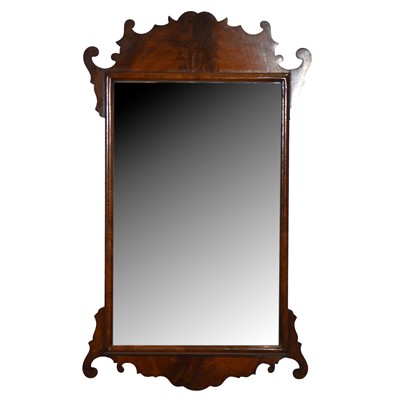 Georgian style mahogany framed wall mirror, rectangular glass, fretted outlines, 80x48cm, and an oval wall mirror in a mahogany frame, 61x91cm. (Qty: 2)