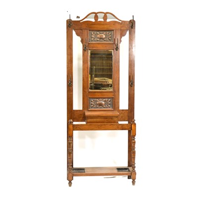 Victorian walnut hallstand, embossed metal and mirror panels, width 81cm, depth 31cm, height 210cm.