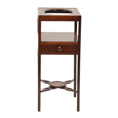George III mahogany washstand, frieze drawer, 33x33cm, height 79cm.
