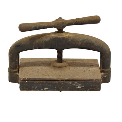 Cast iron book press, 50cm wide, the plate measuring 38cmx25.5cm.