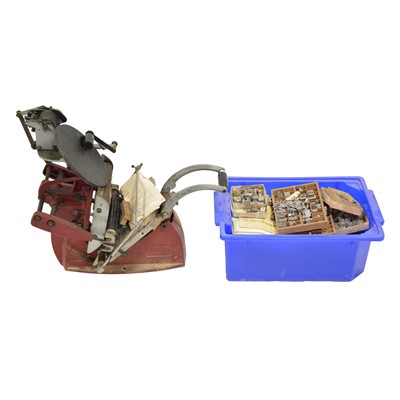 Adana Eight-Five printing press, and quantity of typesetting blocks and trays.