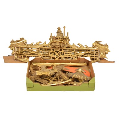 Parts for a gilt wood mirror frame, probably not complete, including two carved birds elements, as found.