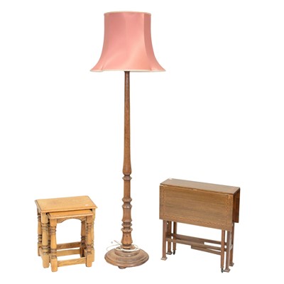 Nest of two oak coffee tables, turned supports, width 42cm and smaller; mahogany standard lamp; Edwardian oak Sutherland table. (Qty: 4)