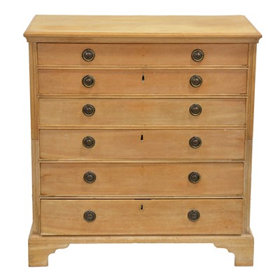 Pine chest of drawers, early 20th century, with six graduating long drawers, split carcass, bracket feet width 94cm, depth 53cm, height 100cm.