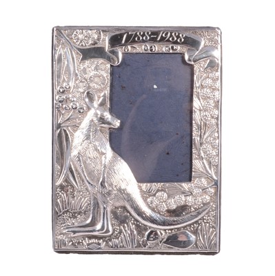 Australian silver commemorative photograph frame, London 1988, Britannia mark, makers mark RRB?, embossed with a Kangaroo and native flora design, ... read more