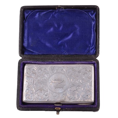 Victorian silver aide memoire, Thomason Hilliard, Birmingham 1893, rectangular with engraved decoration, leather interior, cased, 10cm.