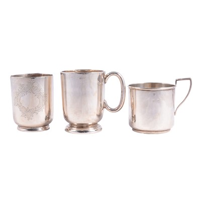 SOLD Lot 175 - Victorian silver Christening mug, Walker & Hall, Sheffield 1899, and two other silver mugs.