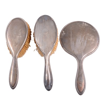 SOLD Lot 174 - Silver-backed dressing table hand mirror, and two hand brushes