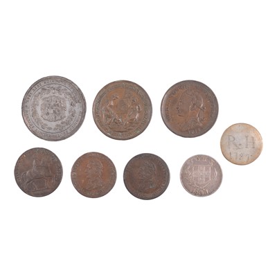 An Edward Bewley Wellington & Victory token (1814); two Wellington Peninsular halfpenny copper tokens; a Hull Halfpenny token (1791; a York 1811 One (Qty: 8) ... read more