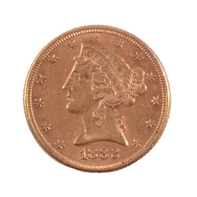 United States of America Gold 5 Dollar Coin, 1882, Philadelphia Mint, 8.4g.