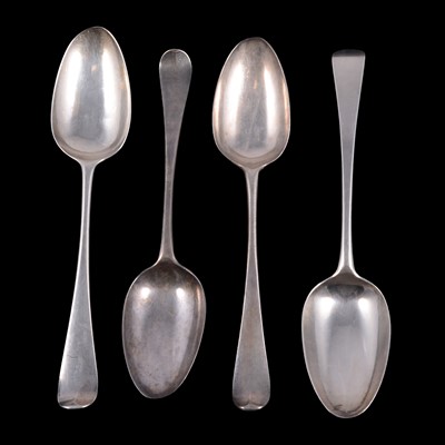 SOLD Lot 179 - Four Georgian silver tablespoons, including Hester Bateman