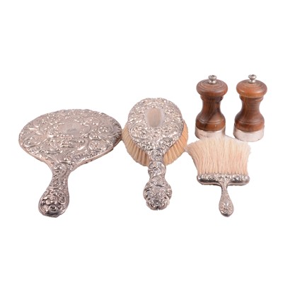 SOLD Lot 185 - Silver-backed hand mirror, William Neale & Sons, Chester 1904, and other silver items.