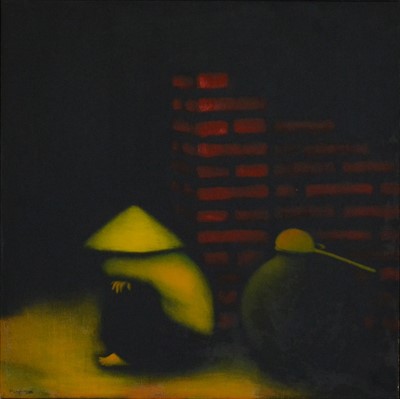 Vietnamese School, Crouching figure, oil on canvas, indistinctly signed and dated 2001, 100x100cm.