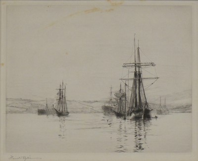 SOLD Lot 253 - Harold Wyllie, Shipping in an estuary, and another etching